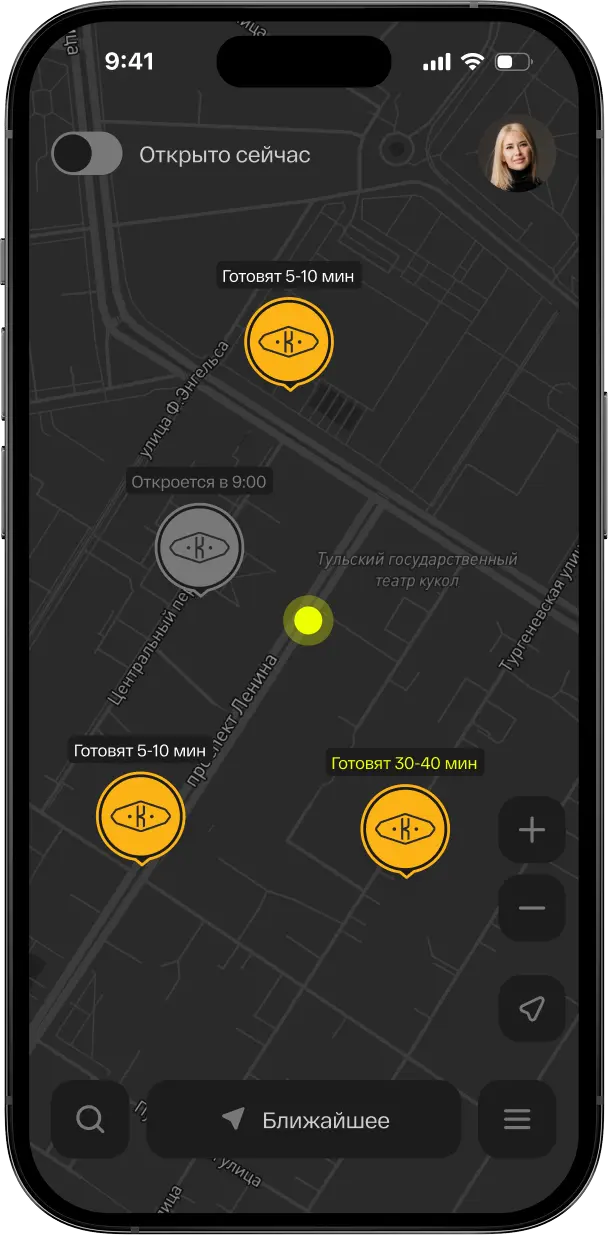 Следи за готовностью в приложении или в виджете на заблокированном экране, также получай Push уведомления.