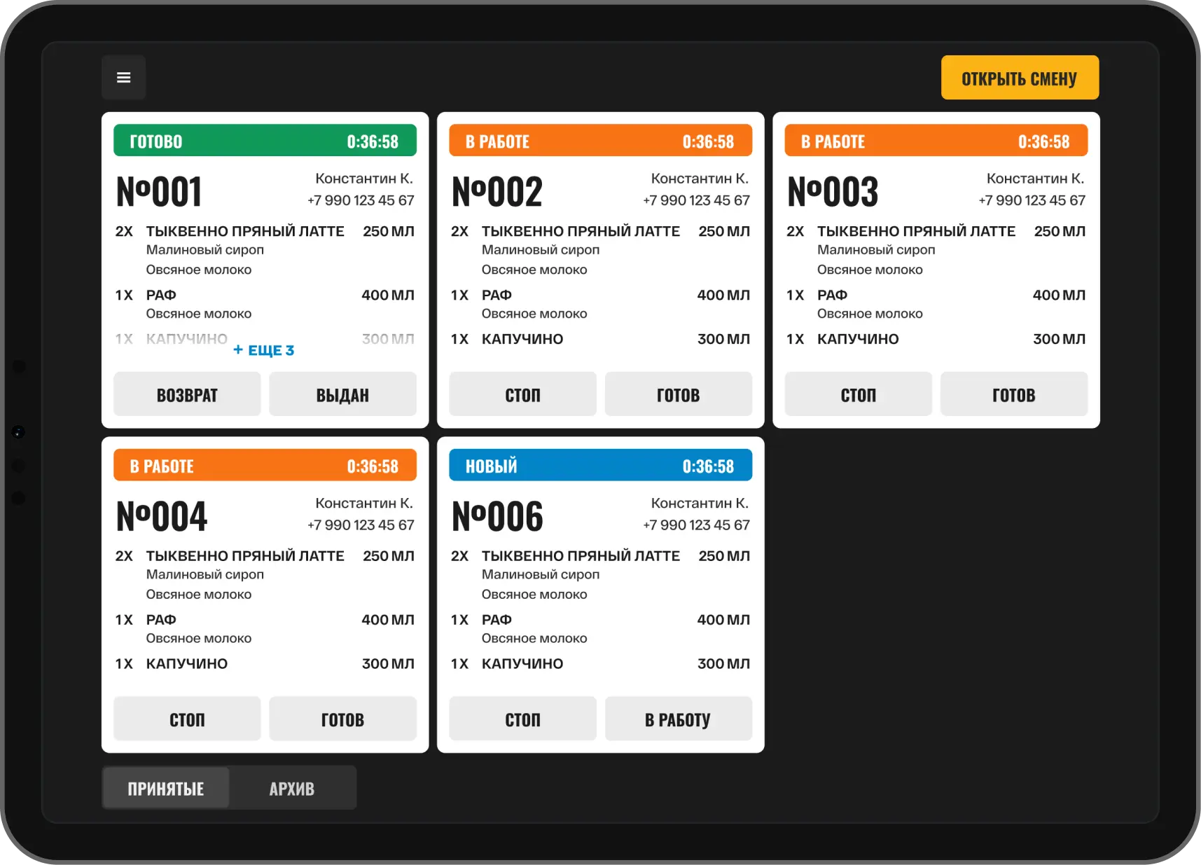 Информативная и понятная система работы с заказами для любого баристы.